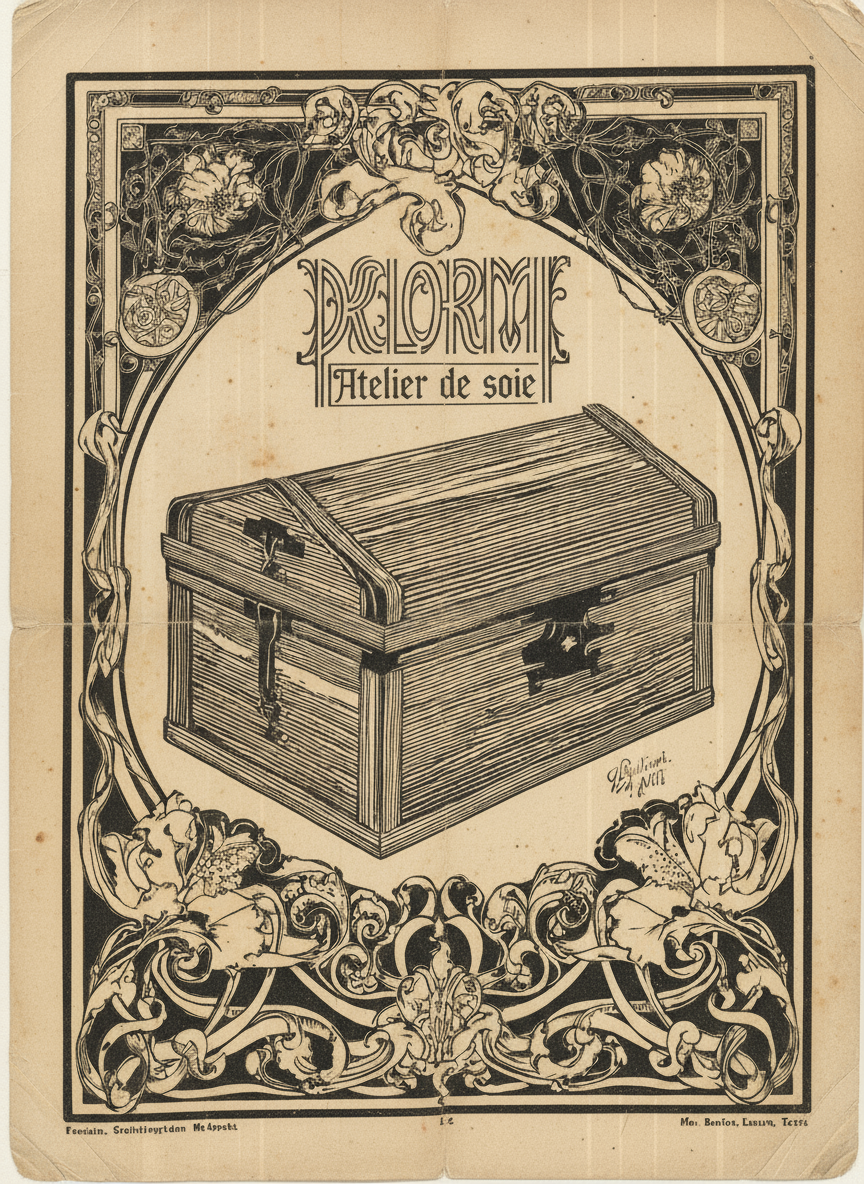 1908 : Delorme’s production had found a natural foothold in Paris. Beyond bespoke orders from families and small couture houses, the workshop maintained a modest storefront known as Maison Dormance, where samples, trunks and silk accessories were displayed for a clientele seeking discreet luxury. This Parisian presence ensured commercial continuity with the salons while preserving the workshop’s artisanal spirit.